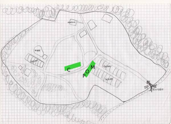 Salades et plantes à mesclun sont en rotation sur toutes les parcelles de la ferme, sauf les vivaces (C=Ciboulette, P=Persil, O=Origan, M=Mélisse)